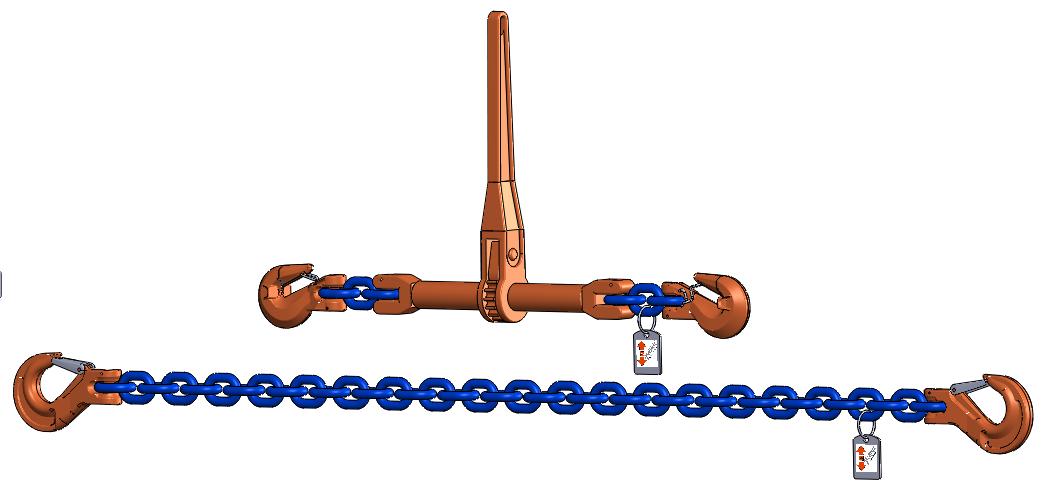 Kotevní řetěz hák-hák s pojistkou CBX13SF a ráčnou CRSGX13 se zkracovači CX92F (2-dílný) d 13/délka L dle výběru (d=průměr drátu řetězu v mm) - 13 400 daN G10 - dle EN 12195-3