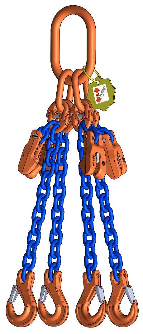 - Řetězový 4-závěs háky s poj. CBX06SF a zkracovači d 6/6 m - 3 000/2 120 kg G10