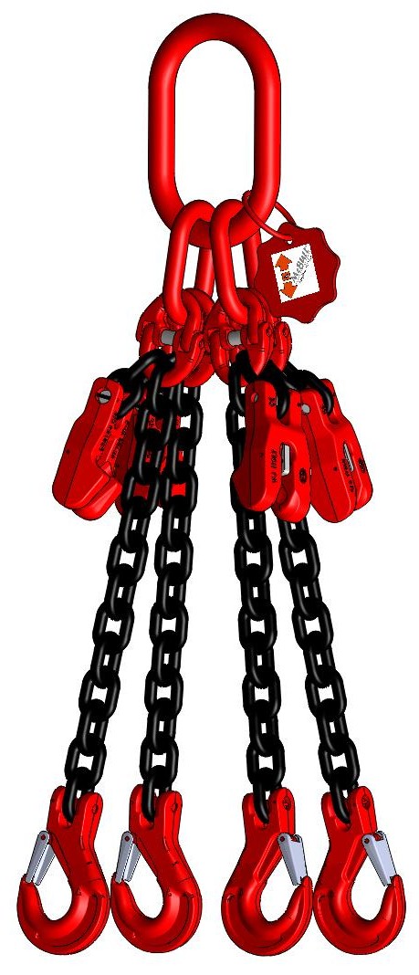 - Řetězový 4-závěs háky s pojistkou MB81SN a zkracovači d 10/1 m - 6 700/4 750 kg